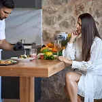 De keuken van Luxury Rhodes Villa Amina Villa Sea View Private Swimming Pool is uitgerust met koffie- en theevoorzieningen, een koelkast, een oven, en is voorzien van een eethoek buiten. Gasten kunnen dineren in Tsampikos Fish Tavern, gelegen op minder dan 1 km verwijderd van deze 7-kamer woning. Kresten Palace E busstation is net om de hoek bij deze 2-slaapkamer Luxury Rhodes Villa Amina Villa Sea View Private Swimming Pool gelegen.